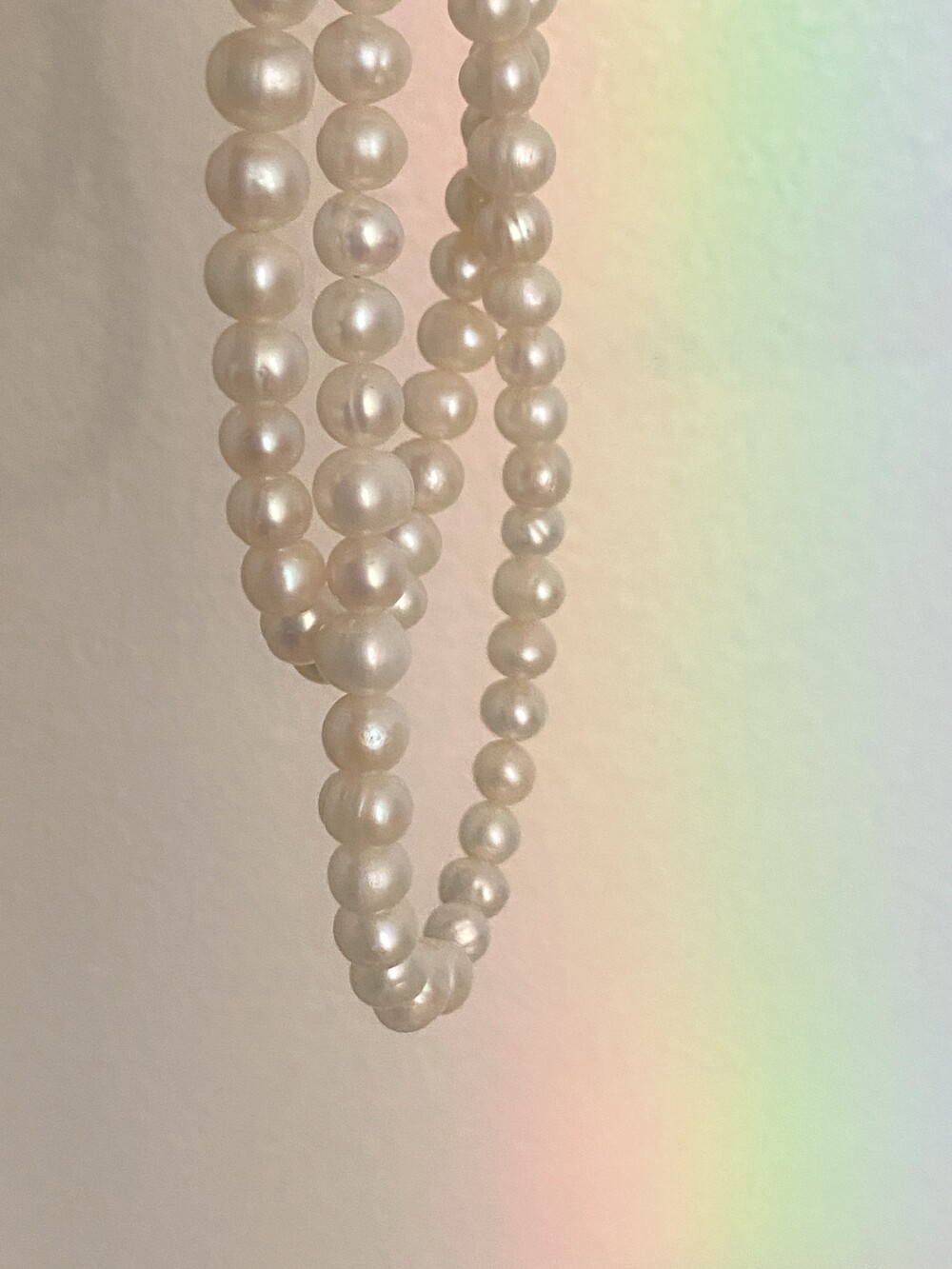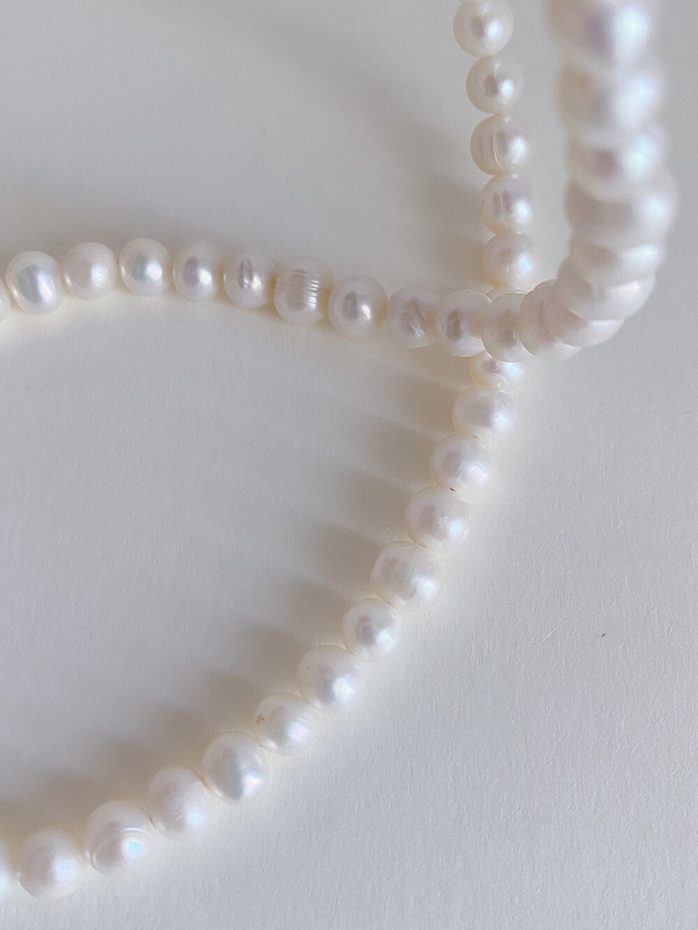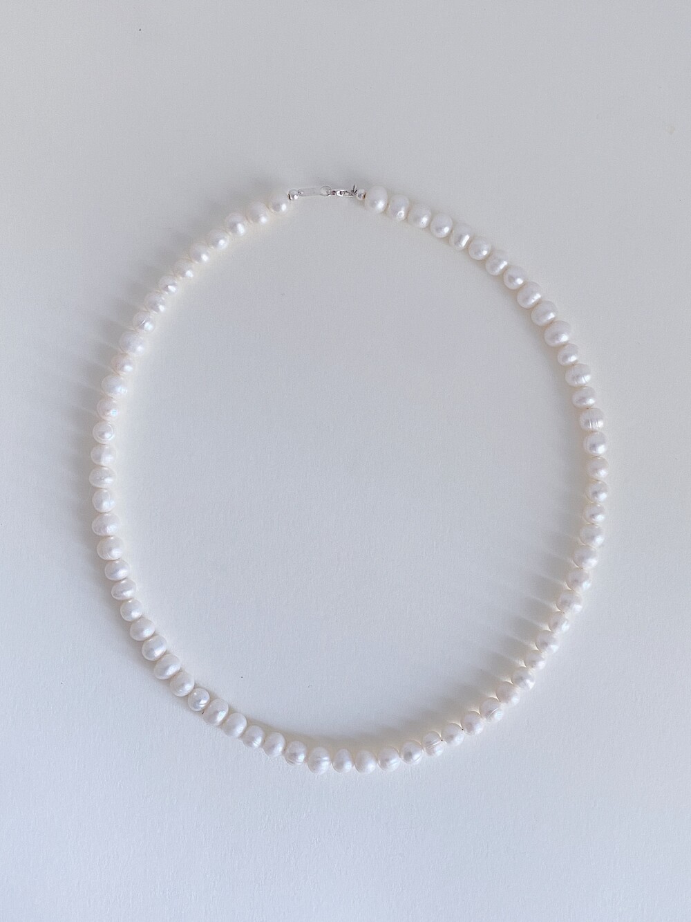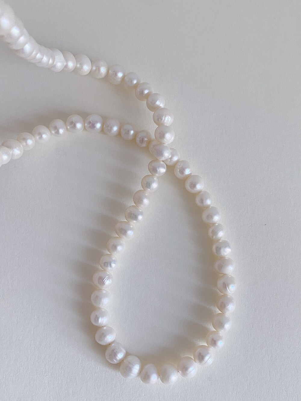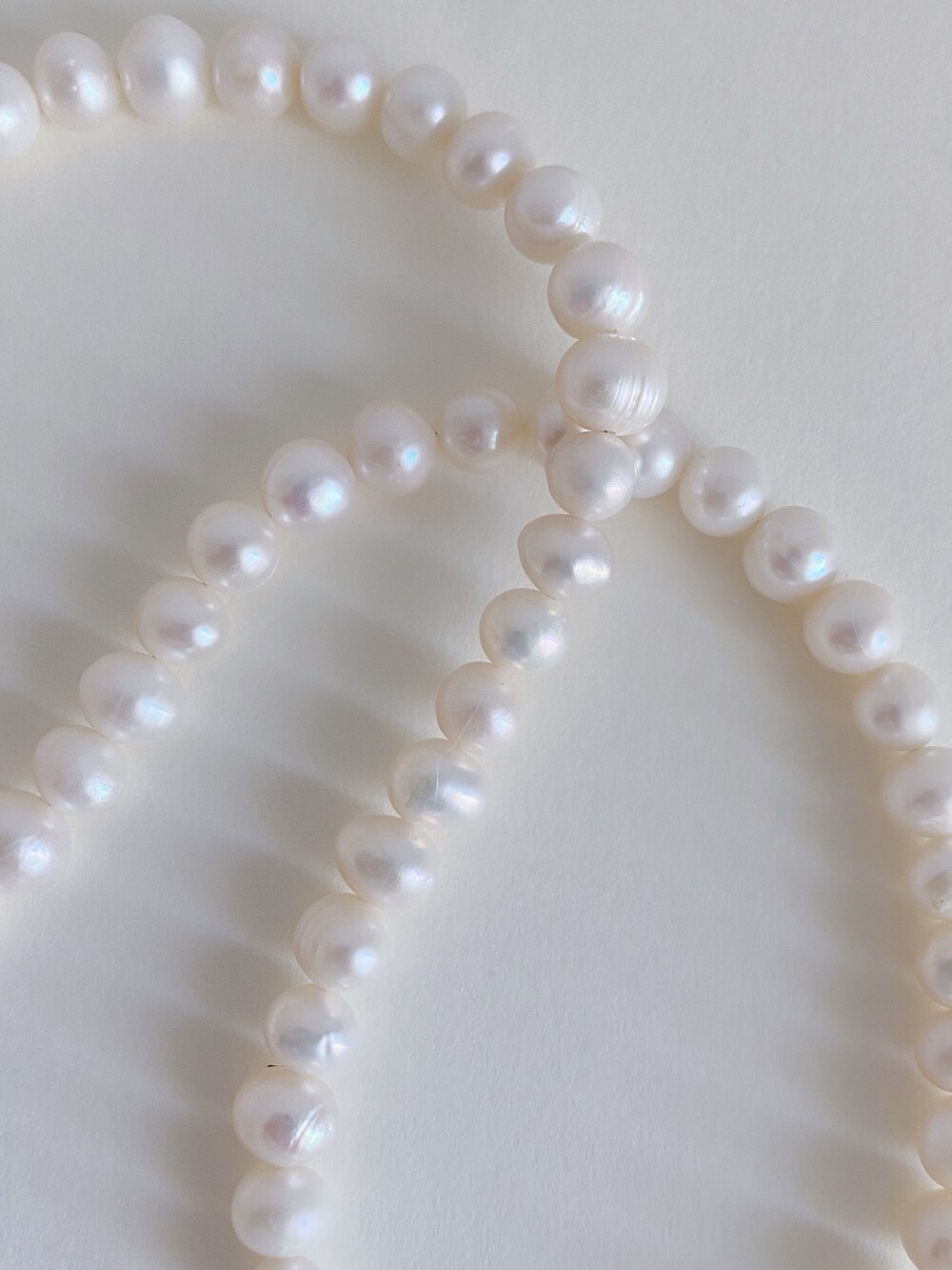 전체적으로 보았을 때 진주의 자연스러운 분위기가 느껴지는 목걸이예요.