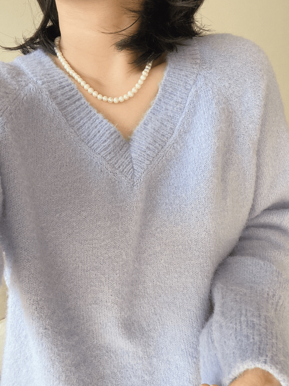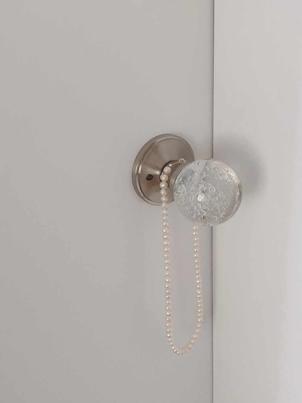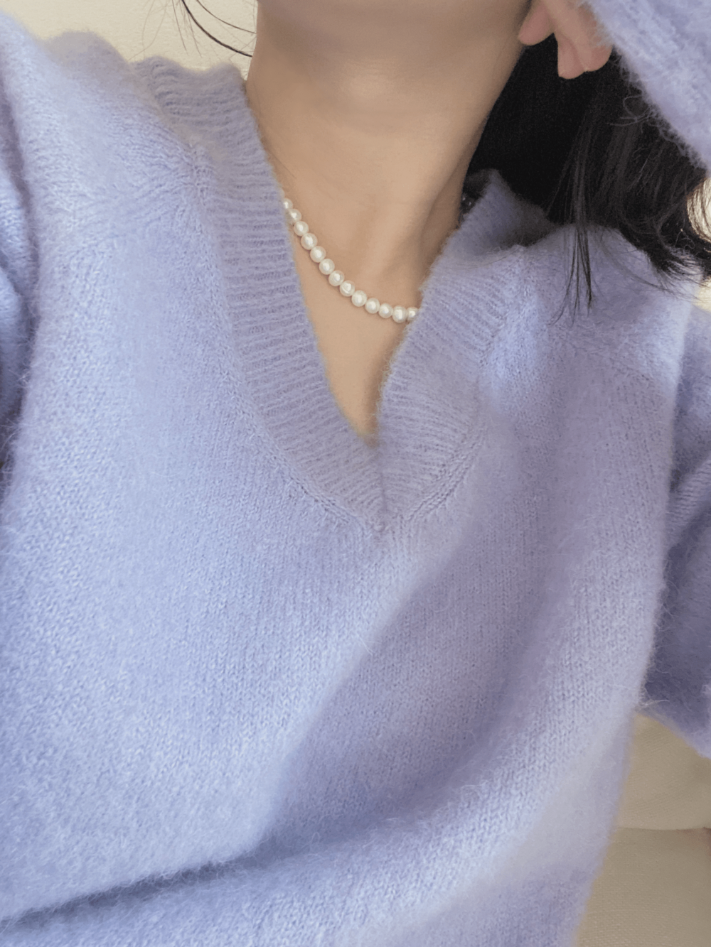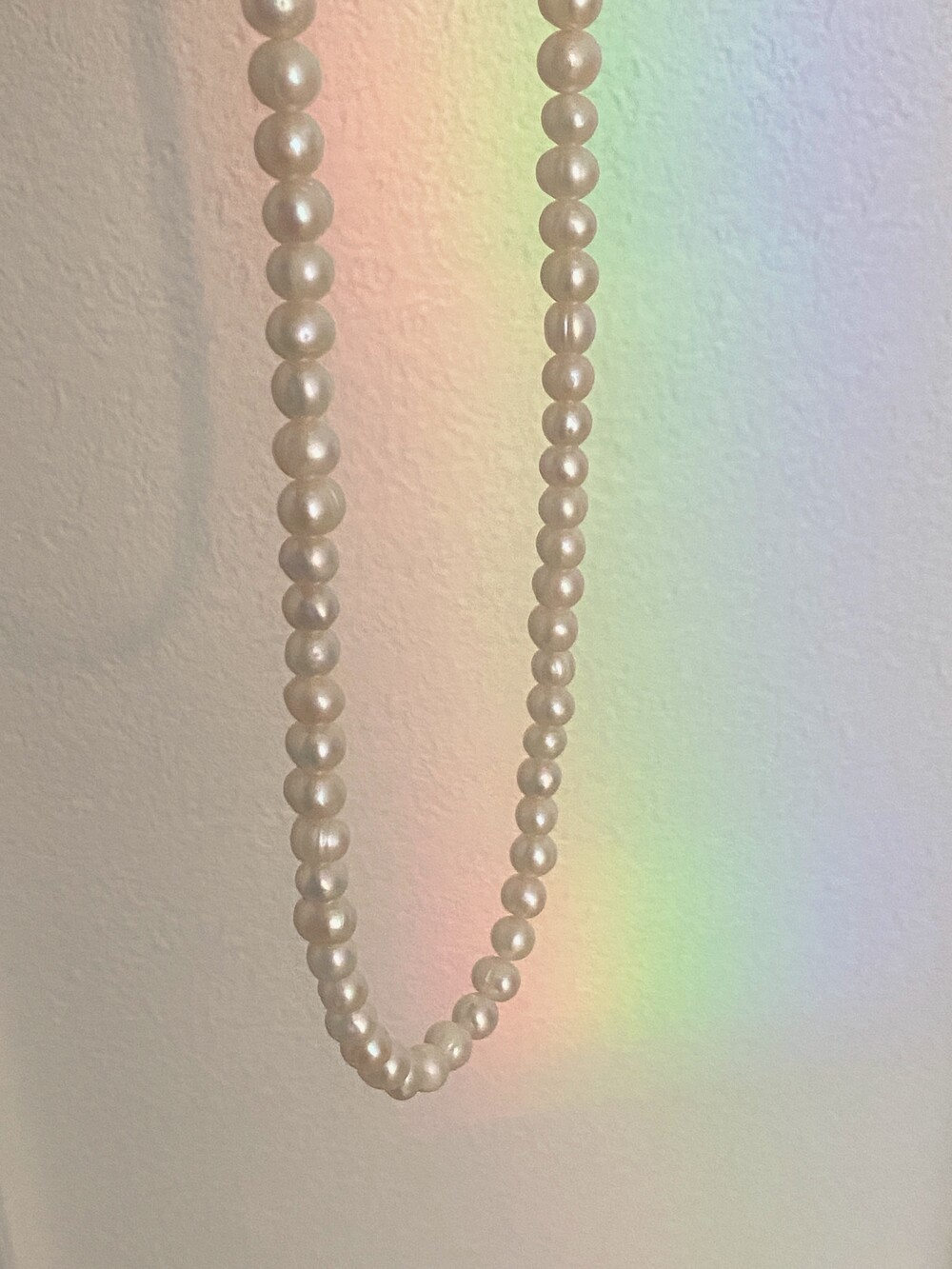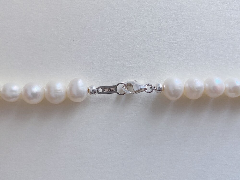 전체적으로 보았을 때 진주의 자연스러운 분위기가 느껴지는 목걸이예요.
