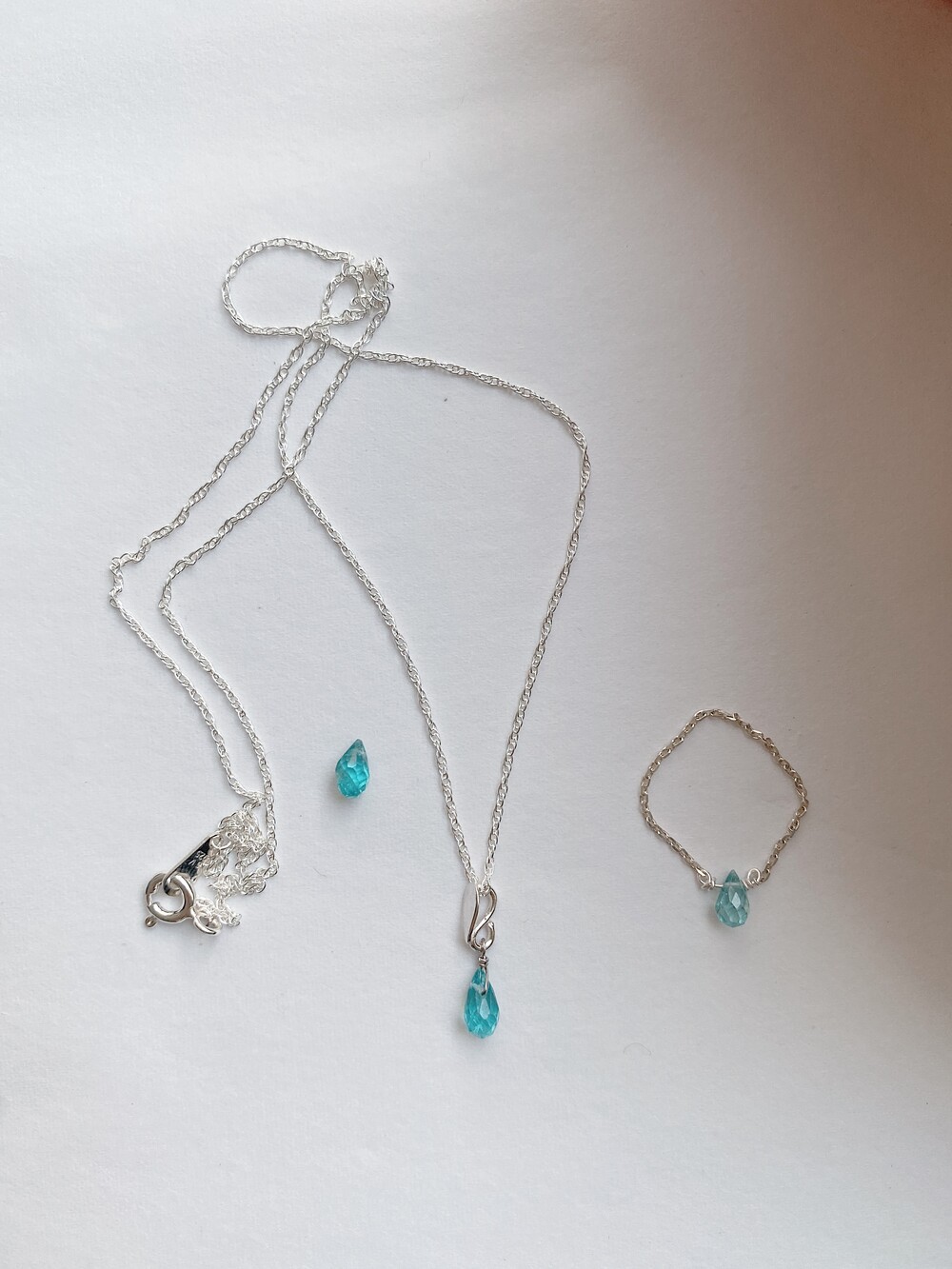 맑고 경쾌한 블루빛의 애퍼타이트로 만든 주얼리예요.
