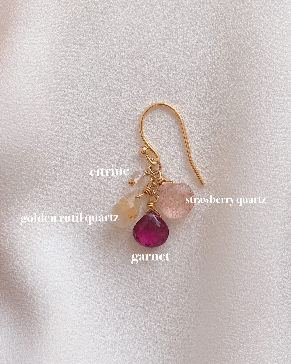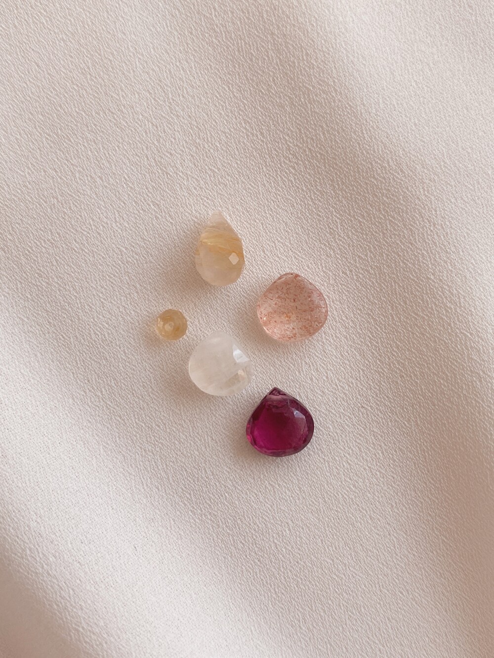 citrine, golden rutil, garnet, strawberry quartz. ..