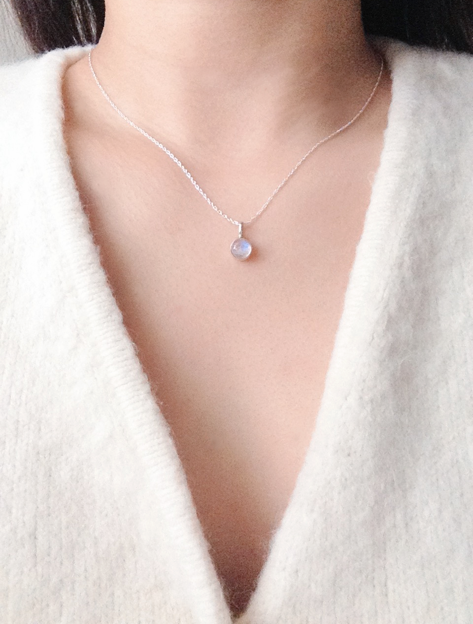 문스톤은 각도에 따라 은은하고 신비로운 푸른빛이 숨었다 나타나는 모습이 매력적인 스톤입니다.