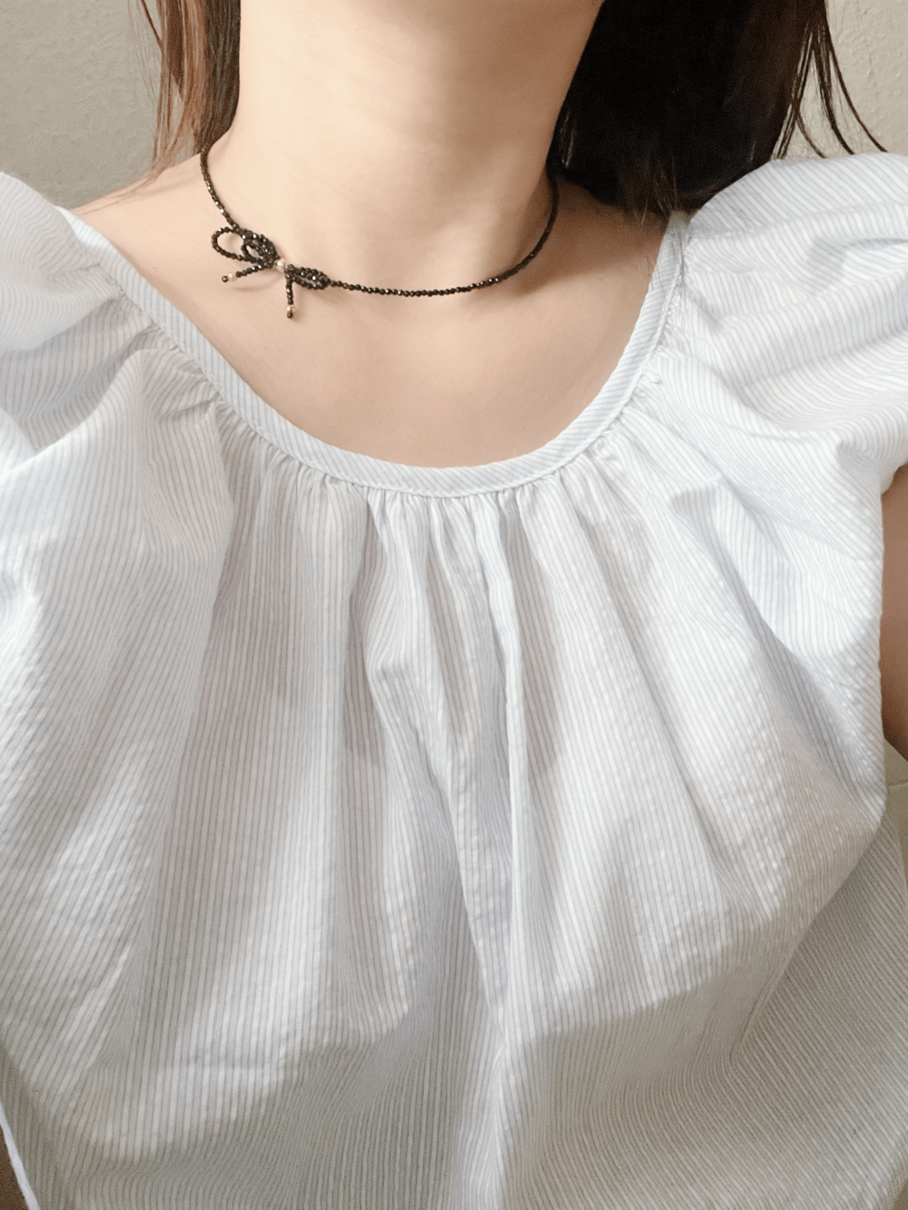 곱게 묶은 리본이 아름다운 목걸이랍니다.