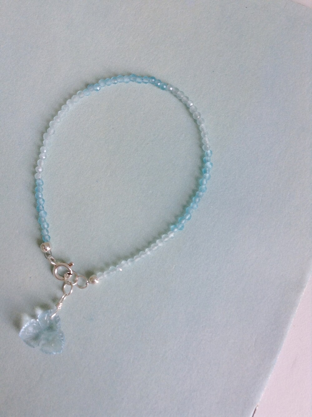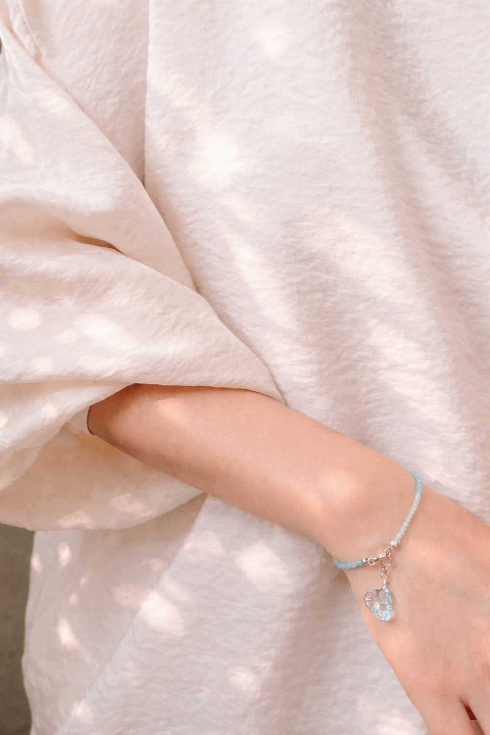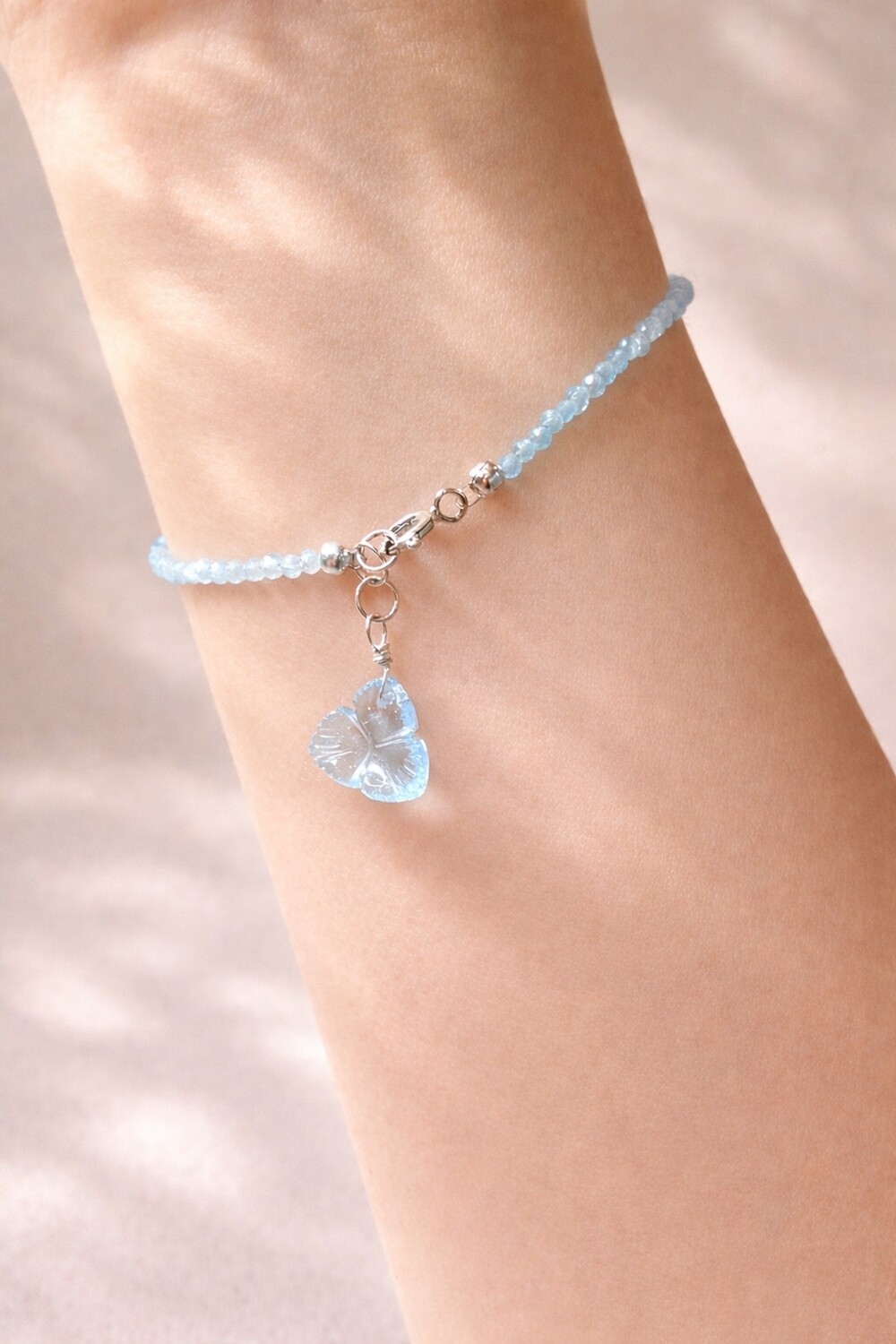 손목을 두르는 원석은 캣츠아이, 끝자락에서 살랑거리는 꽃은 블루토파즈입니다.
