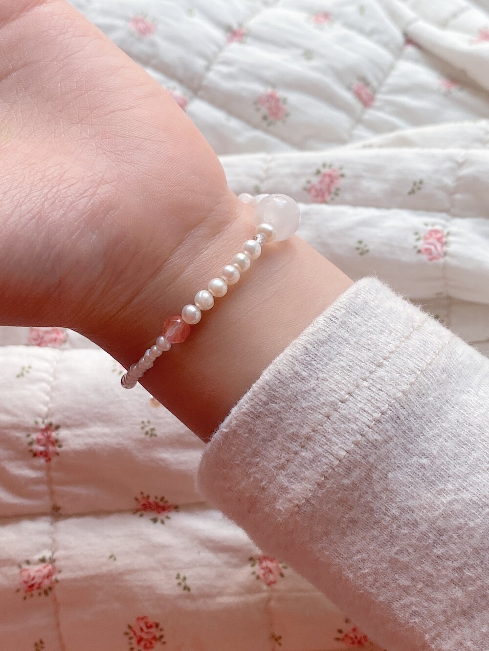 연약하고 부드러운 딸기우유빛의 로즈쿼츠를 세팅해주고