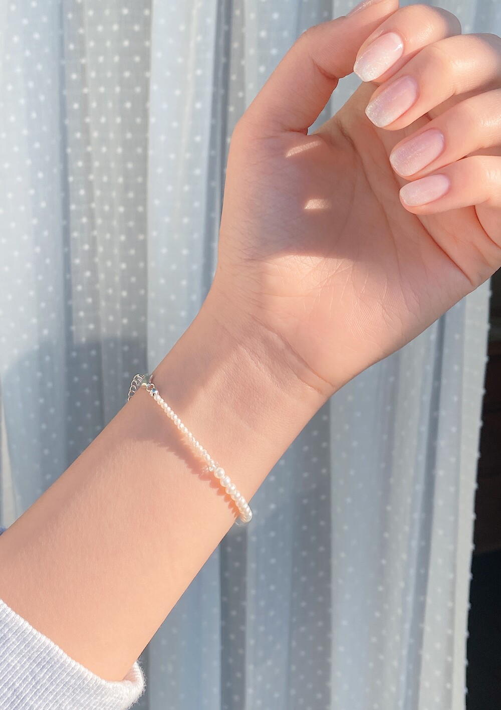팔찌는 팔목둘레에서 1-1.5cm 더한 길이가 가장 이상적입니다.