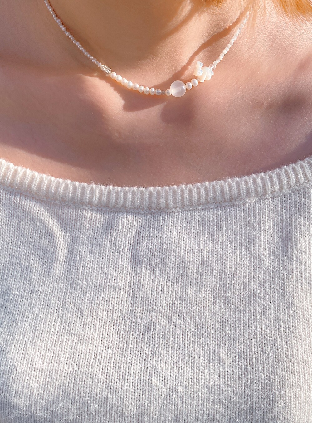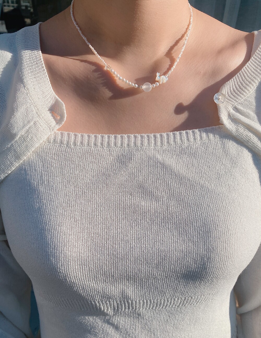 ( 조명으로 인해 진주가 노랗게 나왔습니다. 다른 타입 속 진주와 동일한 진주입니다. )